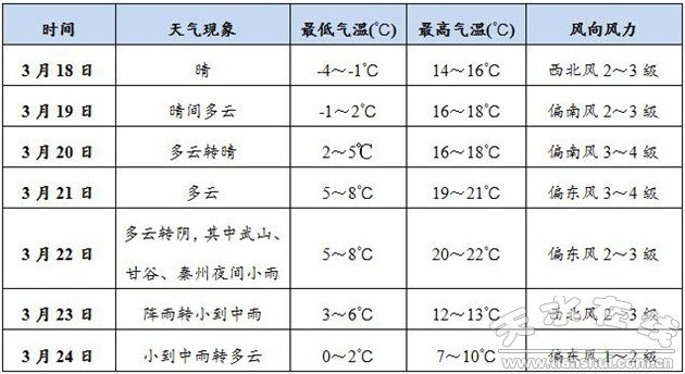 受上游沙塵天氣影響,預(yù)計18~19日白天,我市張家川、秦安、清水可能出現(xiàn)浮塵天氣。