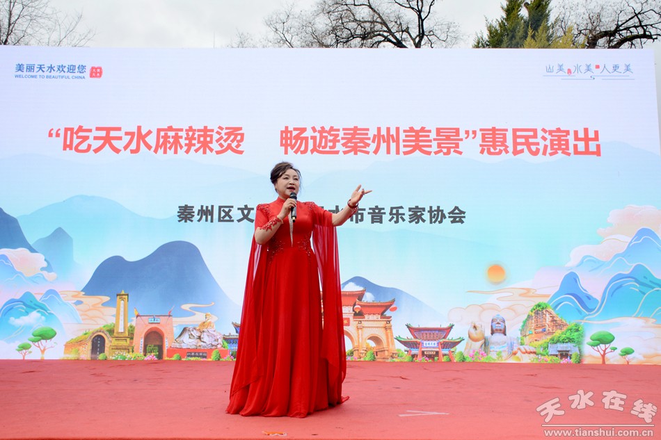 3月24日,由秦州區(qū)文化館和天水市音樂家協(xié)會舉辦的“千山萬水就愛天水 天水之間最美秦州 吃天水麻辣燙 暢游秦州美景”惠民演出在中華西路步行街舉行。