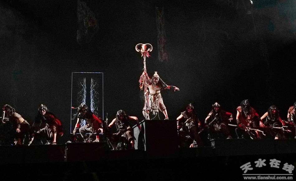 《天水千古秀》是依托天水悠久燦爛的歷史文化打造的一部大型室內(nèi)情境體驗劇,采用互動體驗模式,讓觀眾在行走中“嵌入”到演出情境中,觸摸歷史、尋找自我。3月29日晚,記者走進劇場,立即被逼真的置景所吸引,一個個人物、一道道山川、一個個故事?lián)涿娑鴣。劇情從天水遠古時期引入,同時通過秦漢、三國、唐宋等重要時期的演繹,以及融入天水聞名于世的大地灣、古戰(zhàn)場、麥積山等文化元素,情景般重疊呈現(xiàn)了在天水這片深厚文化沃土上發(fā)生的動人故事。觀眾們在引人入勝的故事和激情澎湃的音樂中穿越時空,隨著故事的推進情景般重疊呈現(xiàn),感受到跨越歷史維度的宏大氣量。