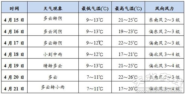 預(yù)計(jì)本周18日和21日有兩次降水過(guò)程,18日全市小到中雨,21日夜間小雨,其余時(shí)段以多云為主。氣溫預(yù)報(bào)以秦州區(qū)為例,日最低氣溫11~13℃,日最高氣溫20~26℃。