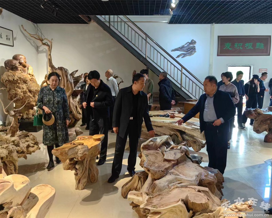 首先,大家來到位于麥積區(qū)社棠鎮(zhèn)的柏弦堂根藝工作室,參觀了我市非遺傳承人、首批鄉(xiāng)村工匠名師王靖創(chuàng)作的構(gòu)思其妙、惟妙惟肖的根雕藝術(shù)展品。隨后,來到飛天雕漆工藝家具有限公司,了解了精美絕倫、造型各異的首批國家級非遺項目——天水雕漆家具各種制作工藝。接著,來到甘肅瑩豪玉文化發(fā)展有限公司,參觀了琳瑯滿目、美不勝收的非遺產(chǎn)品——各類鴛鴦杯、鴛鴦玉工藝制品。最后,來到堪稱“天水麻辣燙”靈魂的甘谷辣椒制作展銷現(xiàn)場,參觀了甘谷辣椒的加工過程。