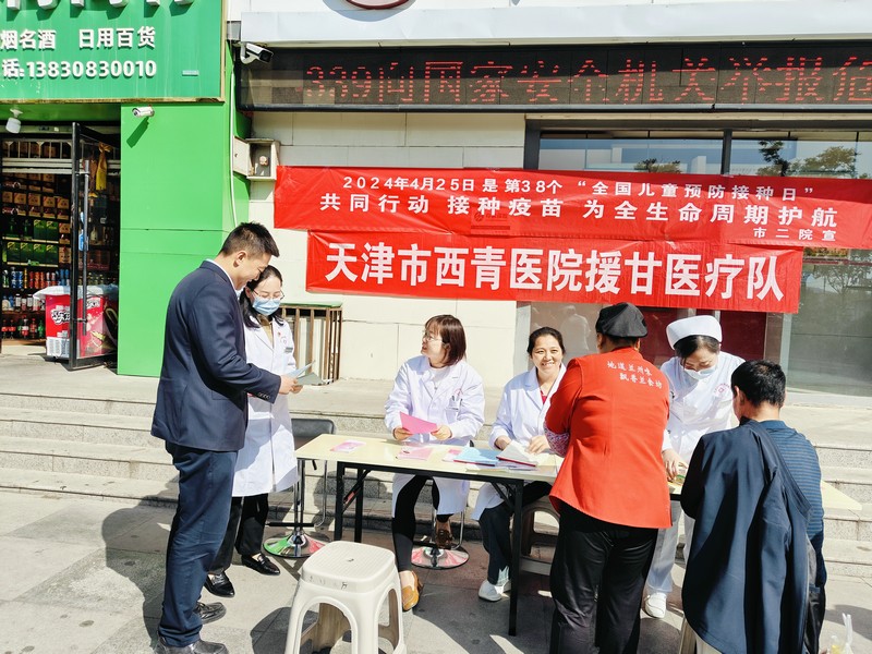 4月25日是第38個(gè)“全國兒童預(yù)防接種日”,今年的主題為“共同行動(dòng) 接種疫苗 為全生命周期護(hù)航”。為進(jìn)一步宣傳疫苗接種在控制傳染病、保護(hù)人民群眾生命健康中的重要作用,當(dāng)天下午,天水市第二人民醫(yī)院公共衛(wèi)生科聯(lián)合天津市西青醫(yī)院援甘醫(yī)療隊(duì)和產(chǎn)科在麥積區(qū)三馬路便橋頭開展“全國兒童預(yù)防接種日”主題宣傳活動(dòng)。