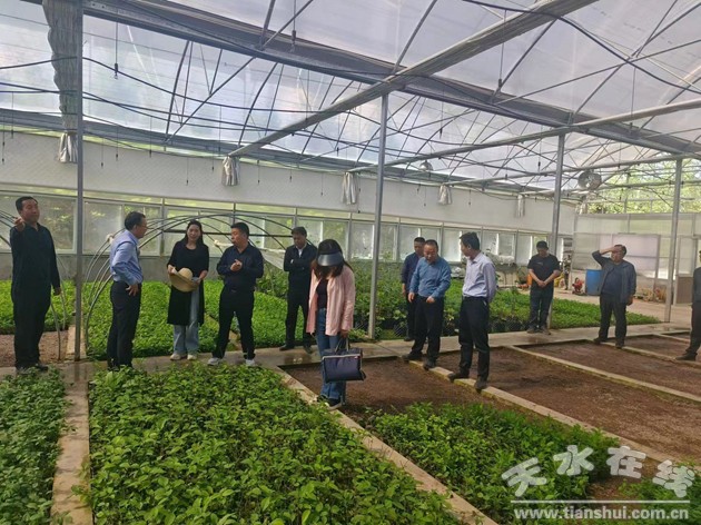 2024年4月27日,甘肅省農(nóng)業(yè)農(nóng)村廳二級巡視員徐麟輝、鄉(xiāng)村產(chǎn)業(yè)發(fā)展處王慧主任一行,檢查指導“天水市蘋果優(yōu)勢特色產(chǎn)業(yè)集群良種苗木繁育和標準化體系建設”項目建設實施情況,市果樹研究所所長楊煥昱,副所長曹金石及相關科室人員陪同檢查。