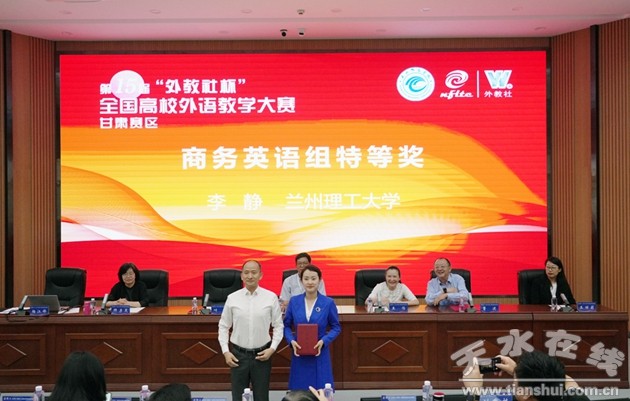 大賽設(shè)英語專業(yè)組、商務(wù)英語專業(yè)組兩個類別,來自省內(nèi)19所高校的35名選手參加比賽。復(fù)賽分為說課、教學(xué)展示兩個環(huán)節(jié),決賽分為說課、回答提問兩個環(huán)節(jié)。經(jīng)過激烈的角逐,英語專業(yè)組和商務(wù)英語專業(yè)組最后決出特等獎2名、一等獎 8名、二等獎 12名、三等獎13名。蘭州理工大學(xué)趙雅芳、李靜兩位老師分獲英語專業(yè)組和商務(wù)英語專業(yè)組特等獎,將代表甘肅省參加今年11月在上海舉行的全國決賽和總決賽。
