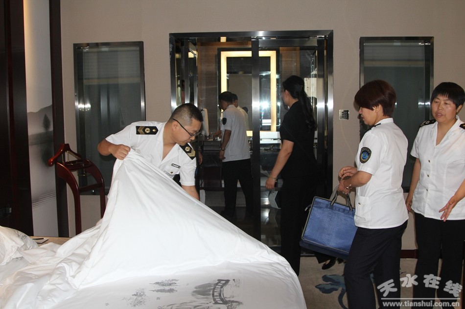 衛(wèi)生執(zhí)法人員重點對經(jīng)營單位衛(wèi)生許可證、從業(yè)人員健康證持證情況;各項衛(wèi)生管理制度的落實、檔案建設情況;顧客用品用具的消毒更換情況;禁止吸煙標志及各項衛(wèi)生制度落實情況;生活飲用水衛(wèi)生、集中空調(diào)的使用、房間通風換氣等情況做了全面的檢查指導。同時對各家酒店的消毒間的設置使用,布草的配比;房間環(huán)境衛(wèi)生、顧客用品用具的清洗保潔;從業(yè)人員對相關衛(wèi)生法規(guī)和公共場所衛(wèi)生知識的掌握情況;二次供水設施設備的清洗、消毒、水質(zhì)檢測等做了細致的督導檢查。