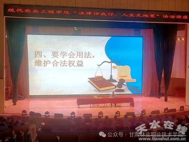 為全面貫徹落實(shí)習(xí)近平總書(shū)記關(guān)于教育的重要論述和習(xí)近平法治思想,推動(dòng)習(xí)近平法治思想進(jìn)課堂、進(jìn)教材、進(jìn)頭腦,使尊法學(xué)法守法用法成為學(xué)院師生的共同追求和自覺(jué)行動(dòng),現(xiàn)代農(nóng)業(yè)工程學(xué)院于6月25日邀請(qǐng)到天水市檢察院第一檢察部負(fù)責(zé)人辛祺作了主題為“法律伴我行·人生天地寬”的法治教育專(zhuān)題講座。