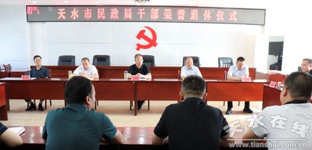 為進一步落實好干部榮譽退休制度,增強退休干部的政治榮譽感、組織歸屬感、生活幸福感和歷史使命感,營造尊重老干部、愛護老干部、學習老干部的良好氛圍,6月24日,天水市民政局舉行干部榮譽退休儀式,局黨組書記、局長王維云主持會議并講話。局領導班子成員、全體干部職工參加會議。