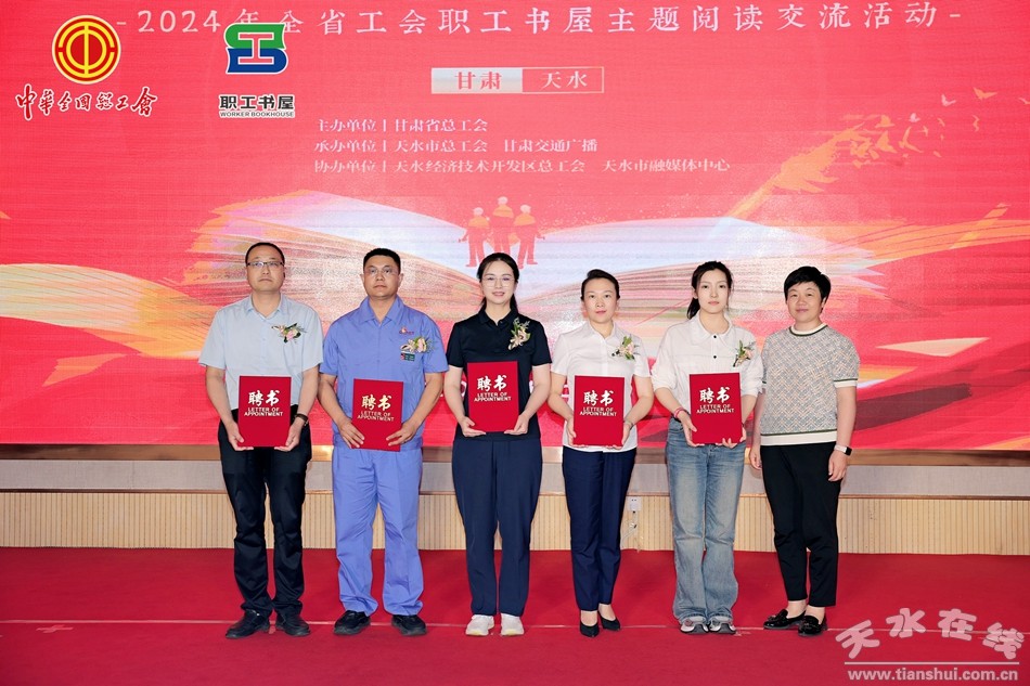 天水市總工會為分享嘉賓頒發(fā)“天水市總工會職工書屋閱讀推廣大使”聘書。