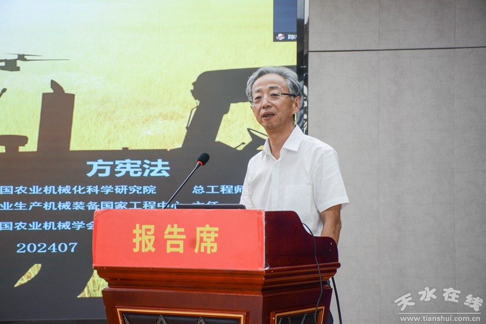 天水日?qǐng)?bào)訊【新天水·天水日?qǐng)?bào)記者李欣桐】7月20日,現(xiàn)代農(nóng)業(yè)產(chǎn)業(yè)助力鄉(xiāng)村振興院士行天水主場(chǎng)活動(dòng)舉辦。中國(guó)農(nóng)業(yè)機(jī)械化科學(xué)研究院總工程師、首席專(zhuān)家方憲法,農(nóng)業(yè)農(nóng)村部南京農(nóng)業(yè)機(jī)械化研究所研究員陳永生,省科協(xié)副主席馬錕,副市長(zhǎng)汪小娟出席活動(dòng)。