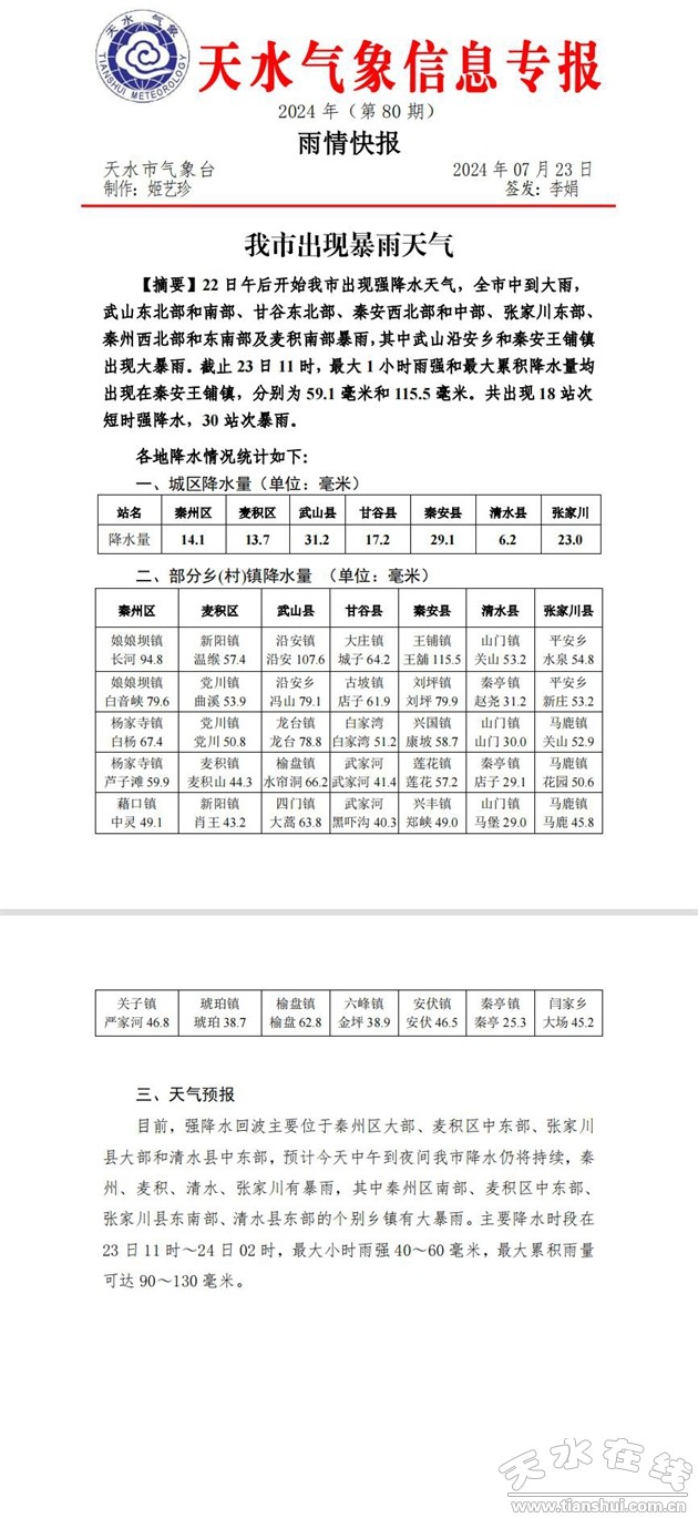 (來(lái)源:天水市氣象臺(tái) 轉(zhuǎn)載:康翠霞)