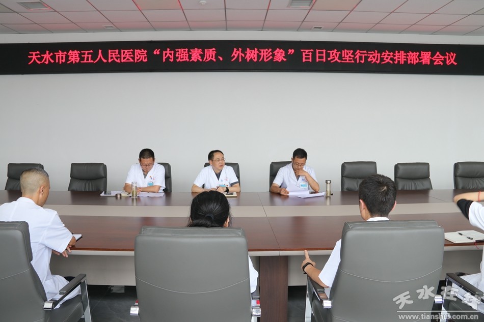 8月7日,天水市第五人民醫(yī)院召開“內強素質,外樹形象”百日攻堅行動安排部署會議,院領導班子成員、各科室負責人參加了會議。