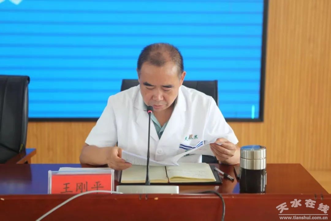 會上,黨委委員、紀(jì)委書記宋惠君解讀《市直衛(wèi)生健康系統(tǒng)“內(nèi)強素質(zhì)、外樹形象”百日攻堅行動實施方案》《天水市醫(yī)療機(jī)構(gòu)開展“十個多一點”暖心行動實施方案》。
