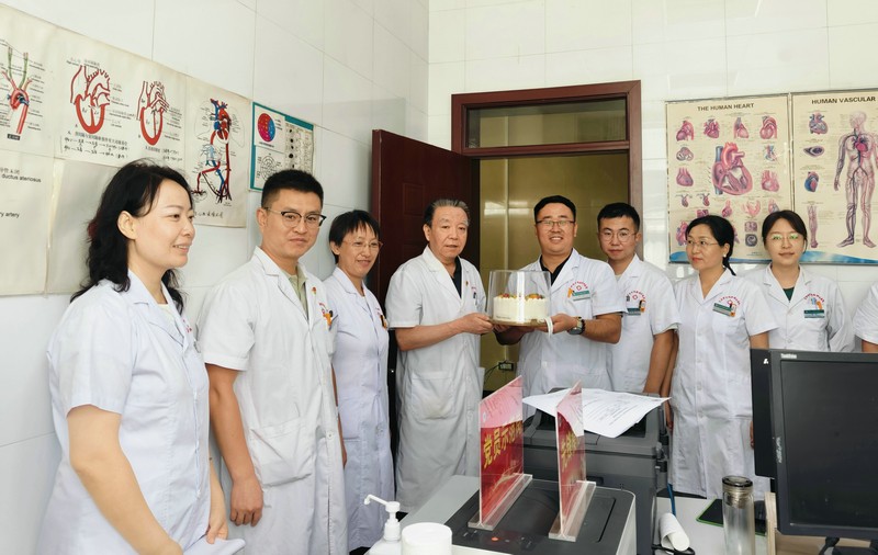8月19日是第七個“中國醫(yī)師節(jié)”,為營造尊醫(yī)重衛(wèi)的良好氛圍,傳遞對醫(yī)務工作者的關心關愛,當天,天水市中西醫(yī)結合醫(yī)院(市二院)黨委書記曹寶國、院長唐志鋒帶領在家班子成員、工會委員和職能科室負責人分組到各臨床、醫(yī)技及相關職能科室開展醫(yī)師節(jié)慰問活動,為全院醫(yī)師送上蛋糕和節(jié)日祝福。