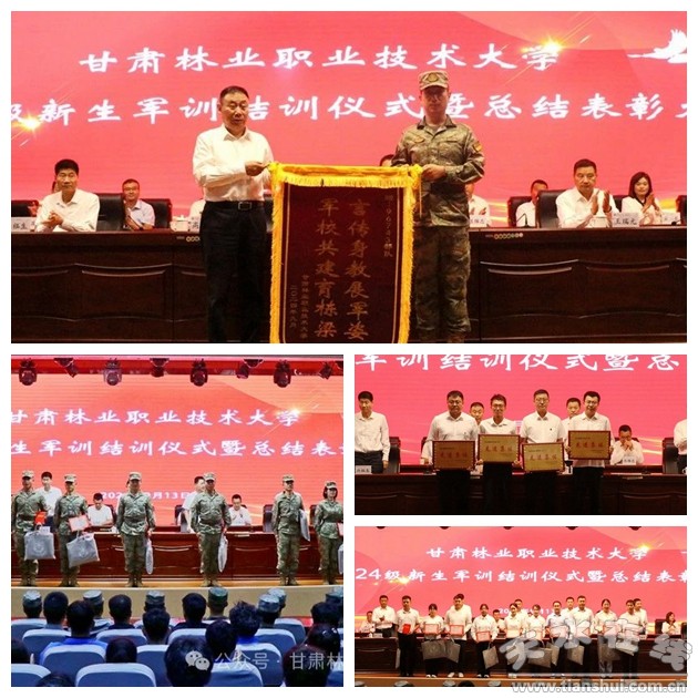 軍訓(xùn)結(jié)訓(xùn)儀式暨總結(jié)表彰大會(huì)在莊嚴(yán)的國歌聲中拉開帷幕。高云峰代表學(xué)校向2024級(jí)學(xué)生軍訓(xùn)團(tuán)贈(zèng)送了錦旗;許祖生宣讀了《甘肅林業(yè)職業(yè)技術(shù)大學(xué)關(guān)于表彰2024級(jí)學(xué)生軍訓(xùn)先進(jìn)集體和個(gè)人的決定》;與會(huì)領(lǐng)導(dǎo)為獲獎(jiǎng)集體和個(gè)人頒發(fā)了獎(jiǎng)牌和榮譽(yù)證書。