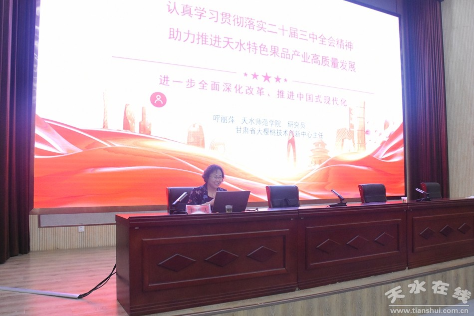 在天水經(jīng)濟(jì)技術(shù)開發(fā)區(qū)和麥積區(qū)職業(yè)中等專業(yè)學(xué)校開展的宣講活動中,全國工作先進(jìn)者,天水師范學(xué)院生物工程與技術(shù)學(xué)院教授呼麗萍立足自身工作實際,用形象生動、通俗易懂的語言對相關(guān)精神進(jìn)行了深刻的闡述和精彩的解讀,引導(dǎo)廣大職工和學(xué)生深刻理解、準(zhǔn)確把握精神內(nèi)涵,鼓勵大家在日常工作和學(xué)習(xí)中用黨的最新精神統(tǒng)一思想、凝聚共識,將學(xué)習(xí)精神的成果轉(zhuǎn)化為推動工作學(xué)習(xí)的強(qiáng)大動力。