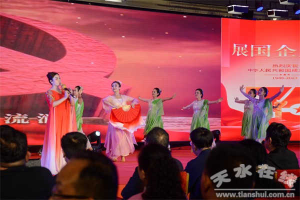 天水市國資國企系統(tǒng)慶祝中華人民共和國成立75周年文藝晚會(huì)分為《夢(mèng)想起航,國企擔(dān)當(dāng)》《祖國頌歌,國企風(fēng)采》《民族歡歌,國企領(lǐng)航》三個(gè)篇章,演出以歌聲追憶歷史,用表演展現(xiàn)風(fēng)采,隆重慶祝中華人民共和國成立75周年。20支隊(duì)伍參加演出,用舞蹈、快板、情景劇、小品、大合唱等多種藝術(shù)形式,集中展示市國資國企系統(tǒng)改革發(fā)展成果,抒發(fā)國企人昂揚(yáng)向上的精神面貌。