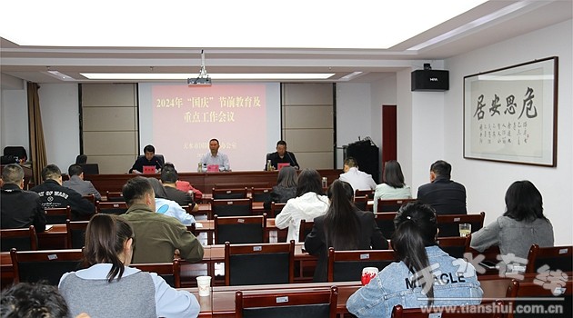 9月29日,天水市國(guó)動(dòng)辦召開(kāi)2024年“國(guó)慶”節(jié)前教育暨重點(diǎn)工作會(huì)議,傳達(dá)學(xué)習(xí)《天水市“迎國(guó)慶保安全護(hù)穩(wěn)定”行動(dòng)工作方案》和《新余火災(zāi)反思系列》等,安排部署國(guó)慶期間值班工作和近期重點(diǎn)任務(wù)。