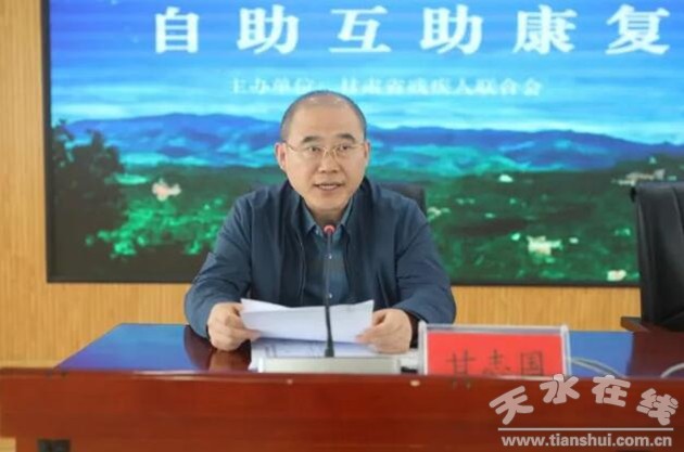 ▲天水市殘聯(lián)理事長(zhǎng)甘志國(guó)宣讀了省殘聯(lián)辦公室發(fā)布的基地的通知