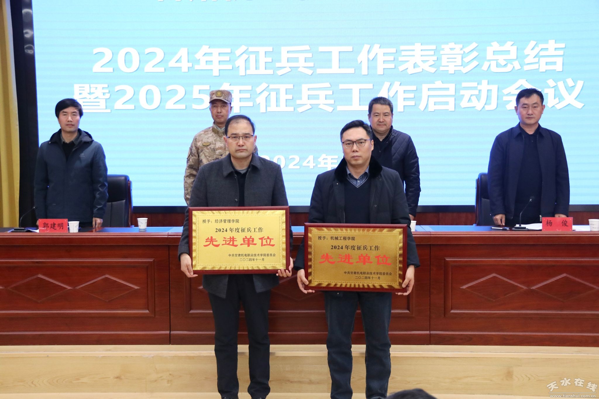 12月3日,學校召開2024年征兵工作總結(jié)表彰暨2025征兵工作啟動會。學校黨委副書記、院長劉乃君,秦州區(qū)人武部上校部長、秦州區(qū)征兵辦公室主任何開緒出席。學校黨委委員、副院長楊俊主持。