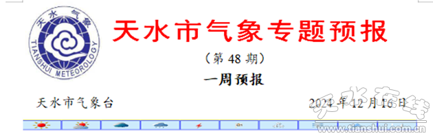 預計本周天水天氣以晴或多云為主,其中18日陰有小雪,秦安東北部、麥積東南部、張家川及清水中雪。氣溫預報以秦州區(qū)為例,日最低氣溫-9~-4℃,日最高氣溫3~8℃。