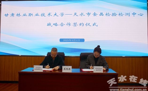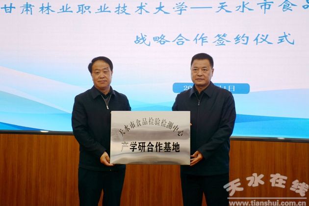 簽約儀式上,雙方簽署了《天水市食品檢驗(yàn)檢測(cè)中心 甘肅林業(yè)職業(yè)技術(shù)大學(xué)戰(zhàn)略合作框架協(xié)議》,舉行了天水市食品檢驗(yàn)檢測(cè)中心產(chǎn)學(xué)研合作基地、甘肅林業(yè)職業(yè)技術(shù)大學(xué)教學(xué)實(shí)踐基地授牌儀式,并圍繞各自職能定位、優(yōu)勢(shì)力量、人才儲(chǔ)備、科研資源以及合作需求等內(nèi)容進(jìn)行深入交流。
