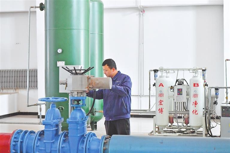 天水藉口水廠工作人員檢查設(shè)備。