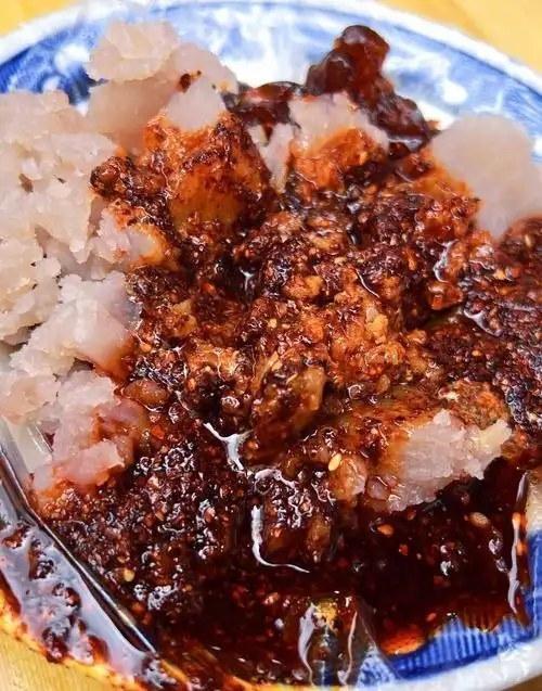 天水涼粉的制作與呱呱類似,只是最后不是捏碎食用。人們將鍋內(nèi)的淀粉順時(shí)針?lè)磸?fù)攪拌煮熟后,置于盆(碗)中冷凝成圓圓的“碗坨坨”。最后用特制的礤子(撈撈)逆時(shí)針劃成長(zhǎng)面條一樣的,就叫“撈撈”;用刀刃順著邊沿削成片狀的,就叫“削削”。這種充滿儀式感的制作過(guò)程,暗合陰陽(yáng)相生的宇宙規(guī)律,堪稱飲食版的“河圖洛書”。當(dāng)人們調(diào)入佐料,澆上香醋或漿水,用木筷攪動(dòng)碗中晶瑩的涼粉時(shí),竟是在復(fù)現(xiàn)八千年前的文明推演,麻辣鮮香之中仿佛能嘗到創(chuàng)世之初的混沌氣息。