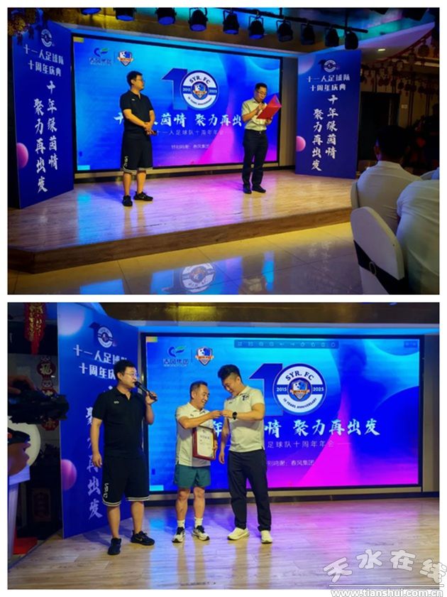 8月2日,天水十一人足球俱樂(lè)部在春風(fēng)大酒店宴會(huì)廳迎來(lái)十周年慶典,贊助單位代表、特邀嘉賓與球隊(duì)成員及家屬齊聚一堂,共憶十年征程,共享榮譽(yù)與快樂(lè)。