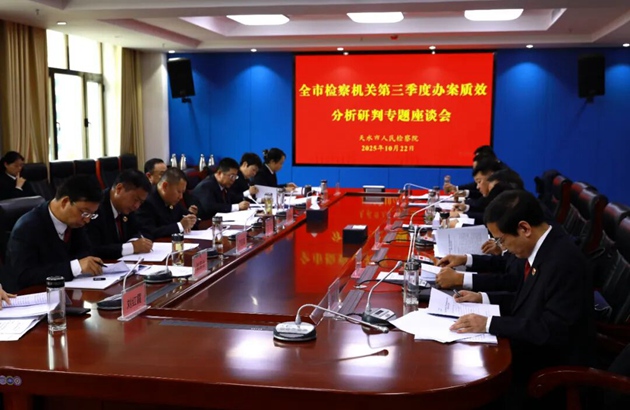10月22日,天水市檢察院召開全市檢察機(jī)關(guān)第三季度辦案質(zhì)效分析研判專題會議,總結(jié)前三季度工作,梳理工作短板弱項,明確改進(jìn)措施,確保圓滿完成全年各項工作。市檢察院黨組書記、代理檢察長王龍出席會議并講話,市檢察院黨組副書記、常務(wù)副檢察長杜彥群主持會議。