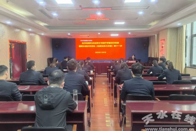 11月7日,天水市人民檢察院舉辦全市檢察機關法律文書制作專題培訓暨履職辦案講學活動培訓班(檢務大講堂)第十一講,由市檢察院第五檢察部負責人劉翠菊進行講授。全市兩級行政檢察部門全體干警、2020年以來新入職的全體公務員和聘用制書記員參加培訓。