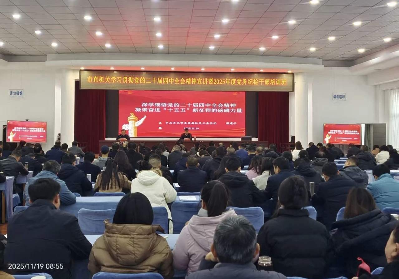 近日,市委直屬機(jī)關(guān)工委舉行市直機(jī)關(guān)學(xué)習(xí)貫徹黨的二十屆四中全會精神宣講報告會。市委宣講團(tuán)成員、市委直屬機(jī)關(guān)工委書記溫建平作宣講報告。市直機(jī)關(guān)黨組織負(fù)責(zé)人、黨務(wù)干部和紀(jì)檢干部220人參加會議。