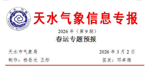 【摘要】預計未來一周,天水大部時段以多云天氣為主,其中7日白天陰有陣雨,氣象條件總體有利于春運工作的有序開展。氣溫預報以秦州區(qū)為例,日最低氣溫2~4℃,日最高氣溫12~17℃。