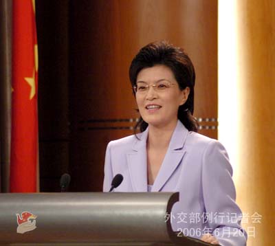 2006年6月20日下午,外交部發(fā)言人姜瑜主持例行記者會。