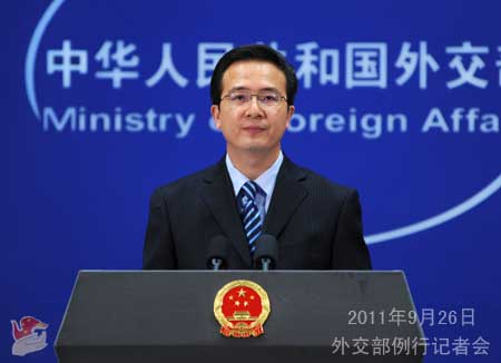 2011年9月26日,外交部發(fā)言人洪磊主持例行記者會。