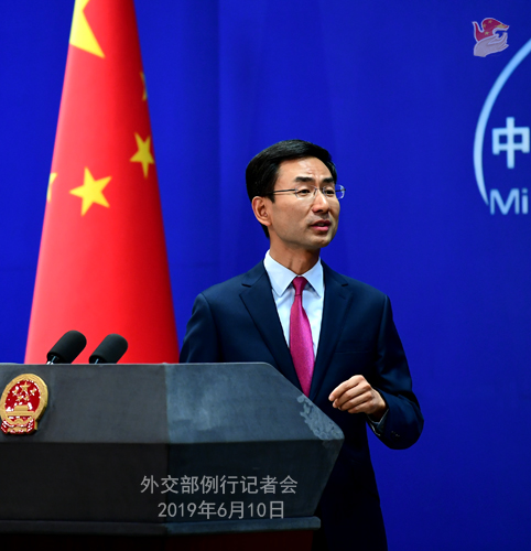 另外我們也注意到,美方聲稱將視大阪峰會(huì)期間雙方會(huì)晤情況,來決定其下一步在經(jīng)貿(mào)問題上的舉措。這里我想指出的是,關(guān)于中美經(jīng)貿(mào)摩擦和中美經(jīng)貿(mào)磋商,我們的態(tài)度是非常明確和堅(jiān)定的。中方不想打貿(mào)易戰(zhàn),但也不怕打貿(mào)易戰(zhàn)。如果美方愿意平等協(xié)商,我們的大門敞開。如果美方執(zhí)意要升級(jí)貿(mào)易摩擦,我們將會(huì)堅(jiān)決應(yīng)對(duì)、奉陪到底。