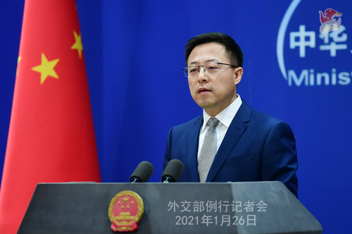 趙立堅(jiān):過去幾年,特朗普政府犯下方向性錯(cuò)誤,將中國視為“戰(zhàn)略競爭對手”甚至“威脅”,并據(jù)此采取了一系列干涉中國內(nèi)政、損害中方利益的錯(cuò)誤行徑,導(dǎo)致中美關(guān)系出現(xiàn)兩國建交以來的異常嚴(yán)峻局面。這不符合兩國人民的根本利益。正如中方多次指出的,中美作為兩個(gè)大國,在維護(hù)世界和平穩(wěn)定、促進(jìn)全球發(fā)展繁榮等方面擁有廣泛共同利益,肩負(fù)特殊重要責(zé)任。中美兩國合則兩利、斗則俱傷,合作是雙方唯一正確的選擇。