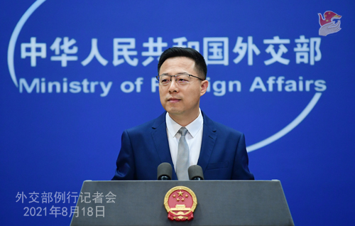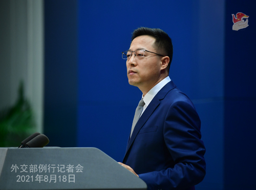 趙立堅(jiān):近日阿富汗局勢(shì)已經(jīng)發(fā)生重大變化。阿富汗人民歷經(jīng)40多年戰(zhàn)亂動(dòng)蕩,渴望和平,人心思定。中方希望阿國(guó)內(nèi)各方通過(guò)對(duì)話協(xié)商解決分歧,避免發(fā)生新的戰(zhàn)亂和人道主義災(zāi)難,推動(dòng)阿局勢(shì)實(shí)現(xiàn)平穩(wěn)過(guò)渡。