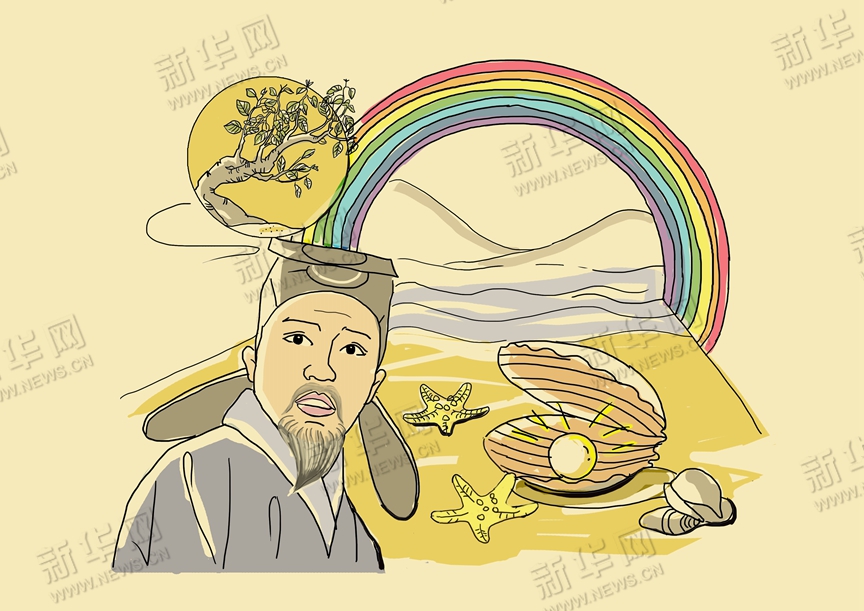 目窮淮海滿如銀,萬(wàn)道虹光育蚌珍。