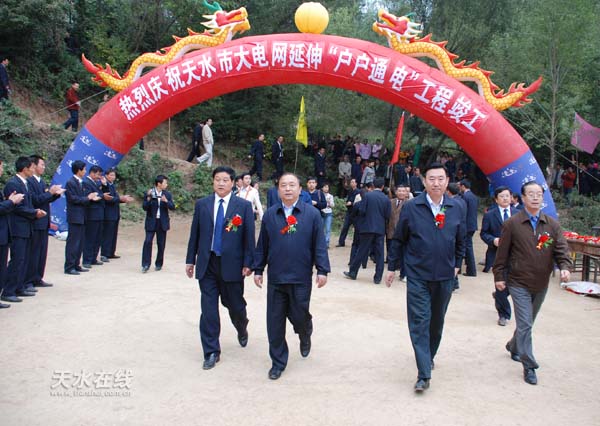 他們從炕邊、門角,伸手拉亮了幾代人企盼已久的電燈,又略顯笨拙地打開了由市供電局捐贈的29吋大彩電,向記者表達(dá)著難以掩飾的激動心情。當(dāng)天,在這個高山之顛的小村莊,來自遠(yuǎn)近十里八鄉(xiāng)的鄉(xiāng)親們攜兒帶女聚集在這里,層層疊疊圍了有二三百人,觀看在這里舉行的天水市大電網(wǎng)延伸“戶戶通電”工程竣工典禮。