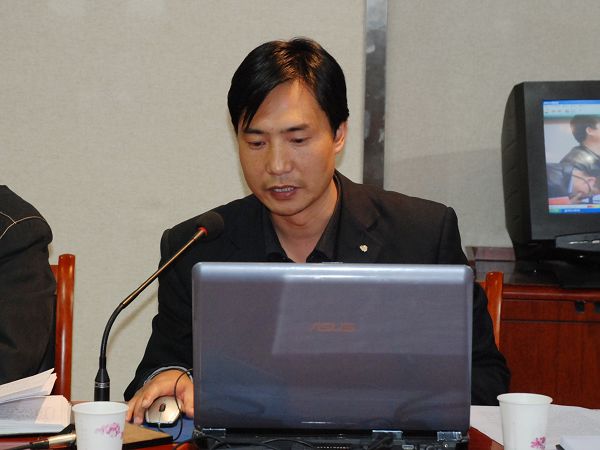 (縣信息中心主任汪向理匯報農(nóng)村信息資源整合情況)