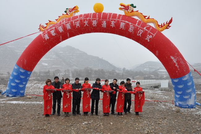 3月5日下午,武山縣在灘歌鎮(zhèn)隆重舉行灘歌南河大橋通車剪彩儀式。市發(fā)改委主任宋建平、市財政局局長劉永年、市農(nóng)業(yè)局局長劉來生、市交通局副局長趙清、武山縣委書記溫利平參加了剪彩儀式,并為這座“便民橋”的開通進行剪彩。