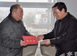 當(dāng)這位八旬老人在縣上領(lǐng)導(dǎo)及兒子和工作人員的共同攙扶下,顫顫微微地走上領(lǐng)獎臺時,參加頒獎典禮的全體人員報以熱烈的掌聲。上臺頒獎的武山縣委書記張建杰激動的拉著老人的手說,“你五十余年義務(wù)修路,用自己的勤勞和汗水詮釋了勤勞、純樸的內(nèi)涵。你為鄉(xiāng)親們做出了奉獻(xiàn),更為建設(shè)武山做出了貢獻(xiàn),你是一名優(yōu)秀的黨員,你是全縣人民學(xué)習(xí)的好榜樣……”
