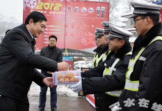 除夕,武山縣城萬家燈火,家家戶戶老少歡聚,吃著年夜飯,看著春晚,享受著幸福的生活。武山縣福利中心也同樣燈火通明,門口貼著春聯(lián),掛著紅燈籠,孤寡老人們吃完熱乎乎的餃子,看電視、喝小酒、唱秧歌、打撲克牌,其樂融融。