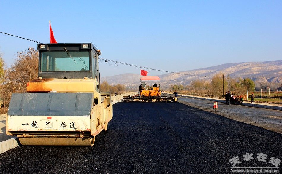 (圖為正在鋪油的武山大道一期東段即洛門鎮(zhèn)區(qū)段工程)