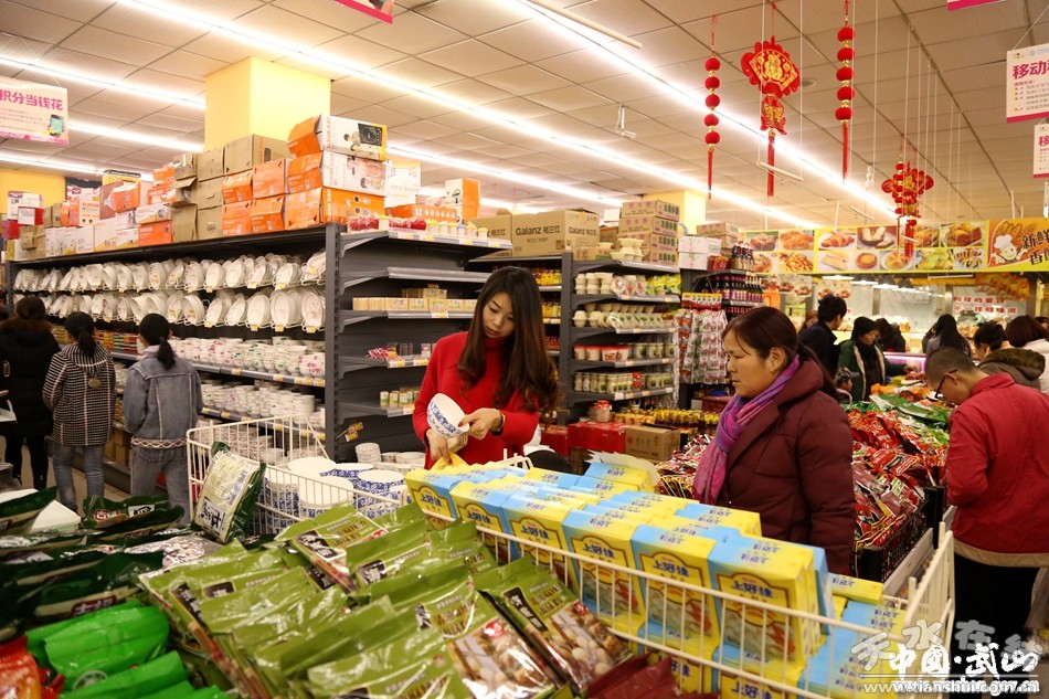 春節(jié)期間,武山縣市場商品豐富、物價穩(wěn)定、購銷兩旺,節(jié)日市場呈現(xiàn)出安全有序,繁榮活躍的景象?h城街巷人頭攢動,交易繁忙,各大超市玲瑯滿目的商品和各式各樣的促銷廣告牌,更增添了幾分新春佳節(jié)的氣氛。