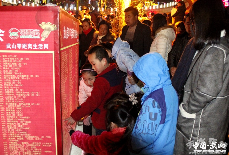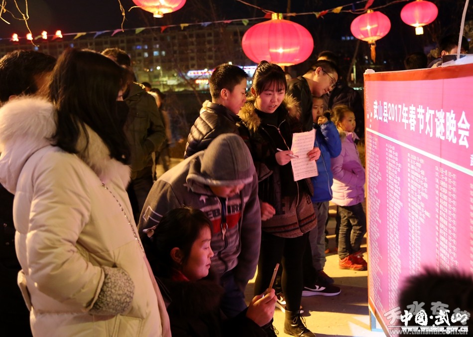金雞納福歡慶佳節(jié),燈謎競猜添彩新春。為弘揚中華燈謎文化,增添傳統(tǒng)節(jié)日喜慶氛圍,2月9日晚上,武山縣2017燈謎晚會開幕,吸引了大批群眾前來競猜。
