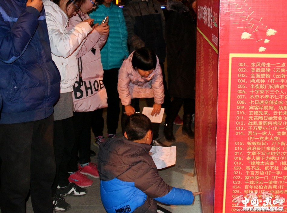 本次燈謎競猜活動共推出競猜謎語1000余條,有成語謎、猜字謎,還有猜地名、人名、物品名等等,內(nèi)容豐富,題材廣泛,上自天文,下至地理,俗語成語,現(xiàn)代知識,包羅無遺。(文圖/ 聶金 陳鵬 李金娣)