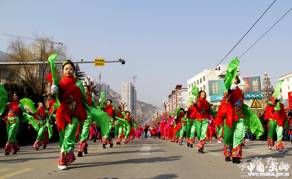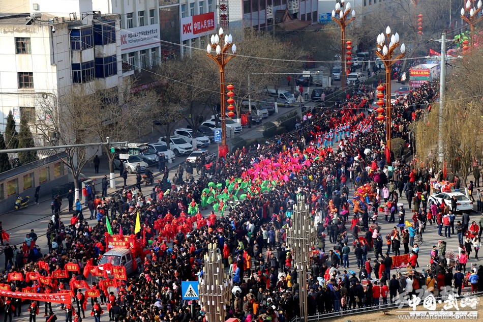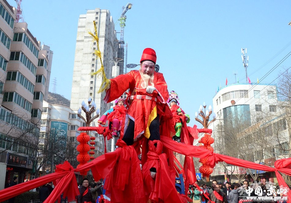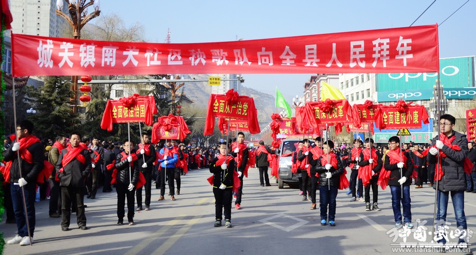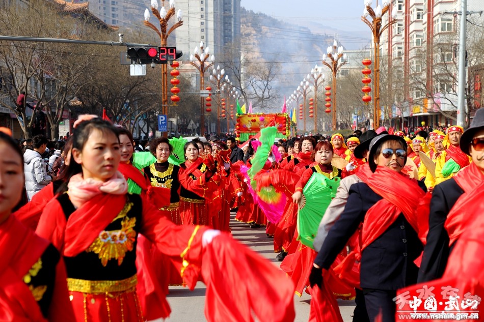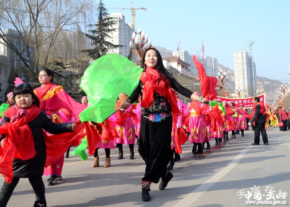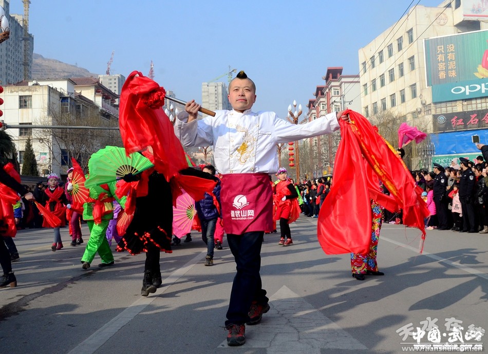 2月11日(農(nóng)歷正月十五),武山縣2017年春節(jié)秧歌社火匯演熱鬧上演。來(lái)自城關(guān)東關(guān)、渭北社區(qū)、灘歌代溝、龍臺(tái)東溝、山丹周莊、洛門西康等鄉(xiāng)村的20余支社火表演隊(duì)帶著新春的問候和祝福,踏著幸福的鼓點(diǎn),扭起歡快的秧歌,整裝齊聚,歡歌起舞。成千上萬(wàn)名群眾從四面八方涌來(lái),爭(zhēng)相觀看這一年一度最接地氣、最具年味的民間藝術(shù)表演。