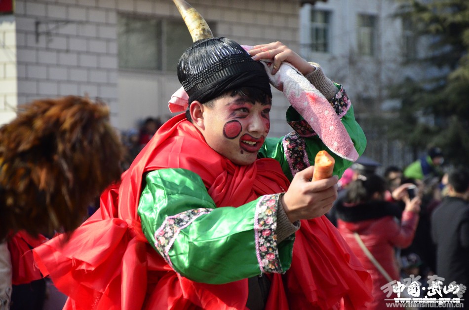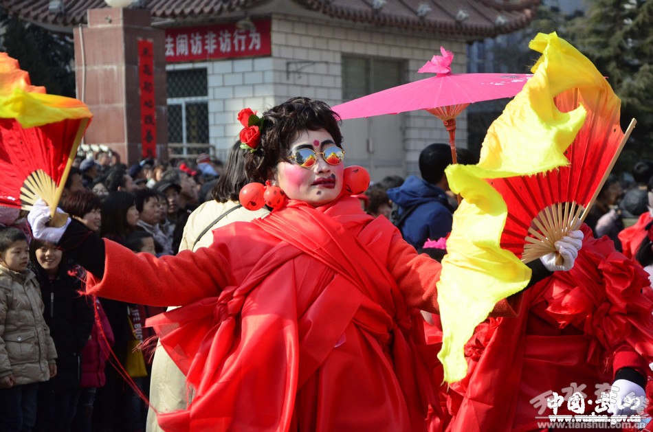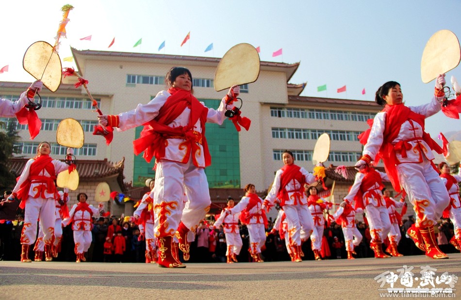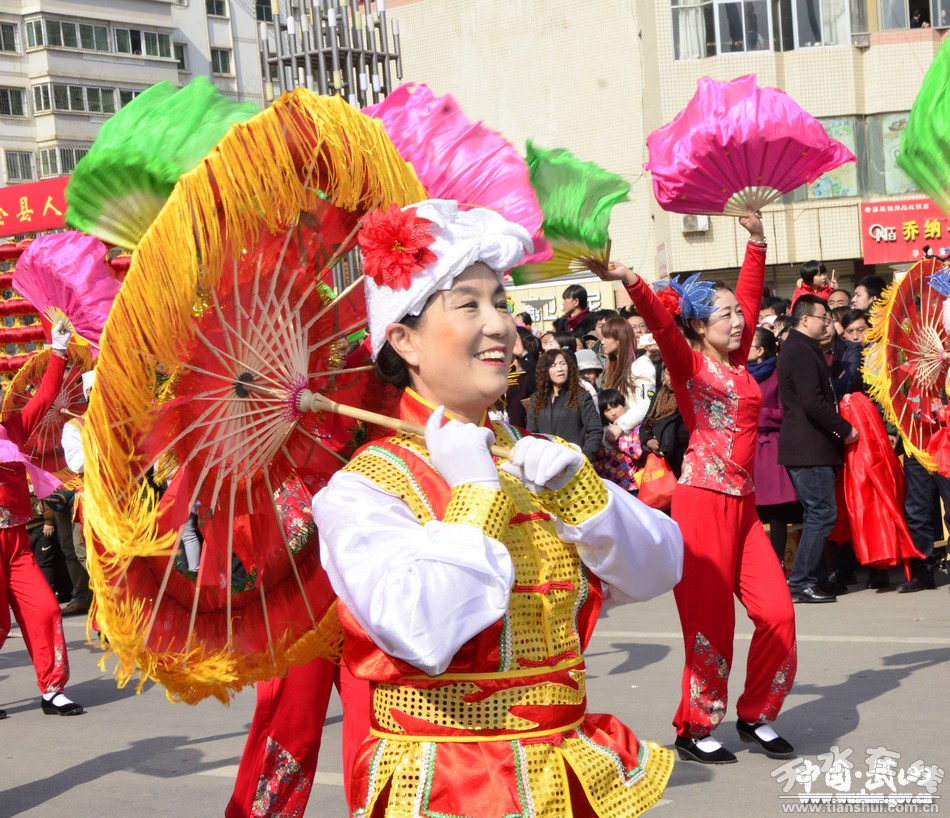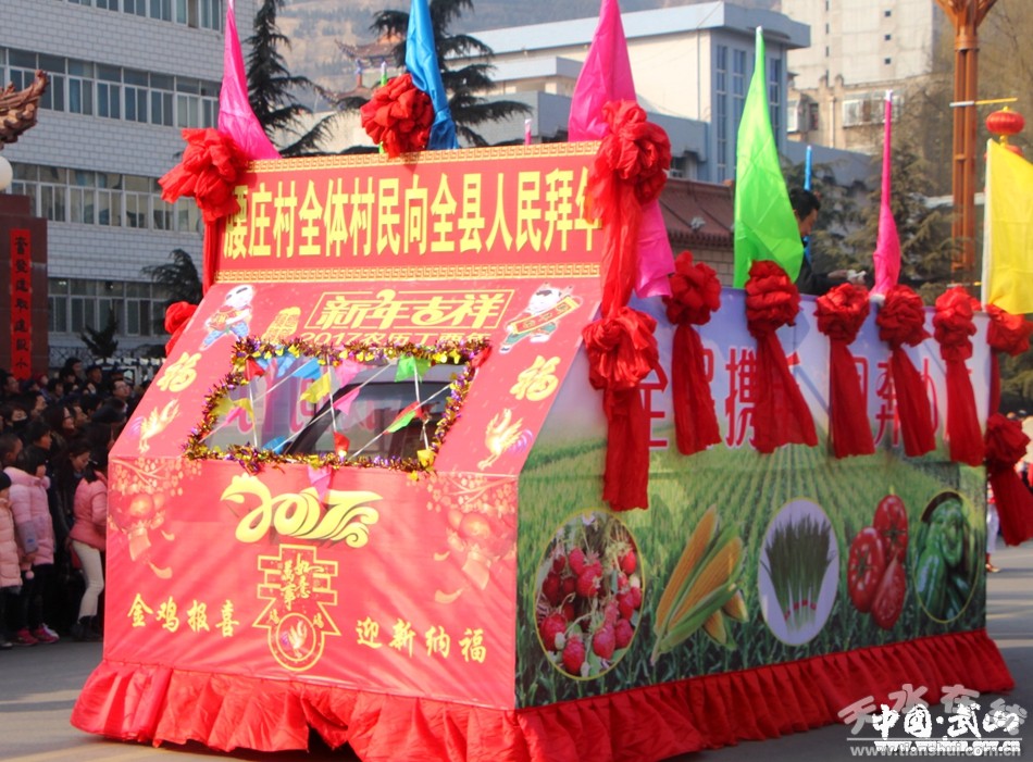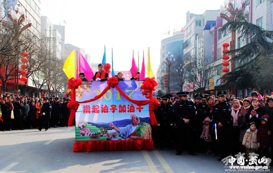 2月11日(農(nóng)歷正月十五),武山縣2017年春節(jié)秧歌社火匯演熱鬧上演。來(lái)自城關(guān)東關(guān)、渭北社區(qū)、灘歌代溝、龍臺(tái)東溝、山丹周莊、洛門西康等鄉(xiāng)村的20余支社火表演隊(duì)帶著新春的問候和祝福,踏著幸福的鼓點(diǎn),扭起歡快的秧歌,整裝齊聚,歡歌起舞。成千上萬(wàn)名群眾從四面八方涌來(lái),爭(zhēng)相觀看這一年一度最接地氣、最具年味的民間藝術(shù)表演。