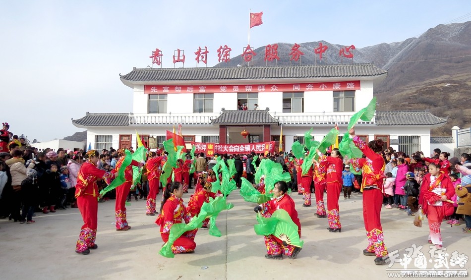 龍臺鎮(zhèn)青山村是貧困村,群眾文化生活相對比較貧乏。隨著生活水平的提高,勤勞的農(nóng)民們開始追求像城里人一樣健康向上的文化生活。于是,村民自發(fā)組織的秧歌隊,從正月初十到正月十三,敲起鑼、打起鼓,走村過莊在鎮(zhèn)內(nèi)巡回演出,為山區(qū)群眾獻(xiàn)上了一份豐盛的文化大餐。他們自編自演的節(jié)目生動活潑,豐富多彩,表達(dá)了對新生活的祝福和向往。秧歌隊走到哪里,哪里就鑼鼓喧天,受到群眾熱烈歡迎。